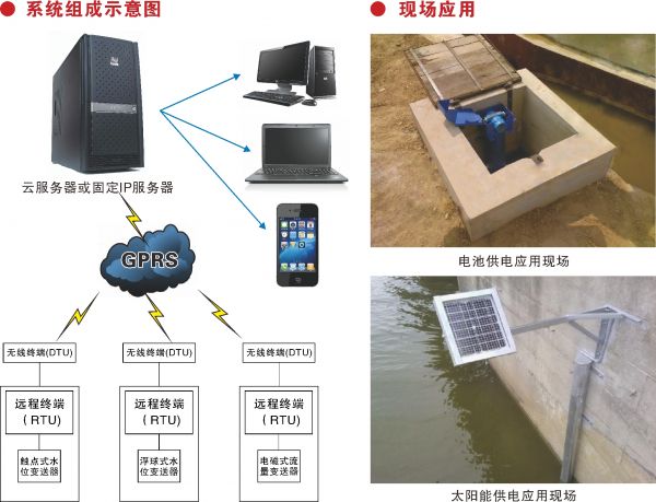 該裝置主要由感應(yīng)式水位傳感器、變送器、遠(yuǎn)程終端控制系統(tǒng)(RTU)、無線終端(DTU)及系統(tǒng)軟件組成。